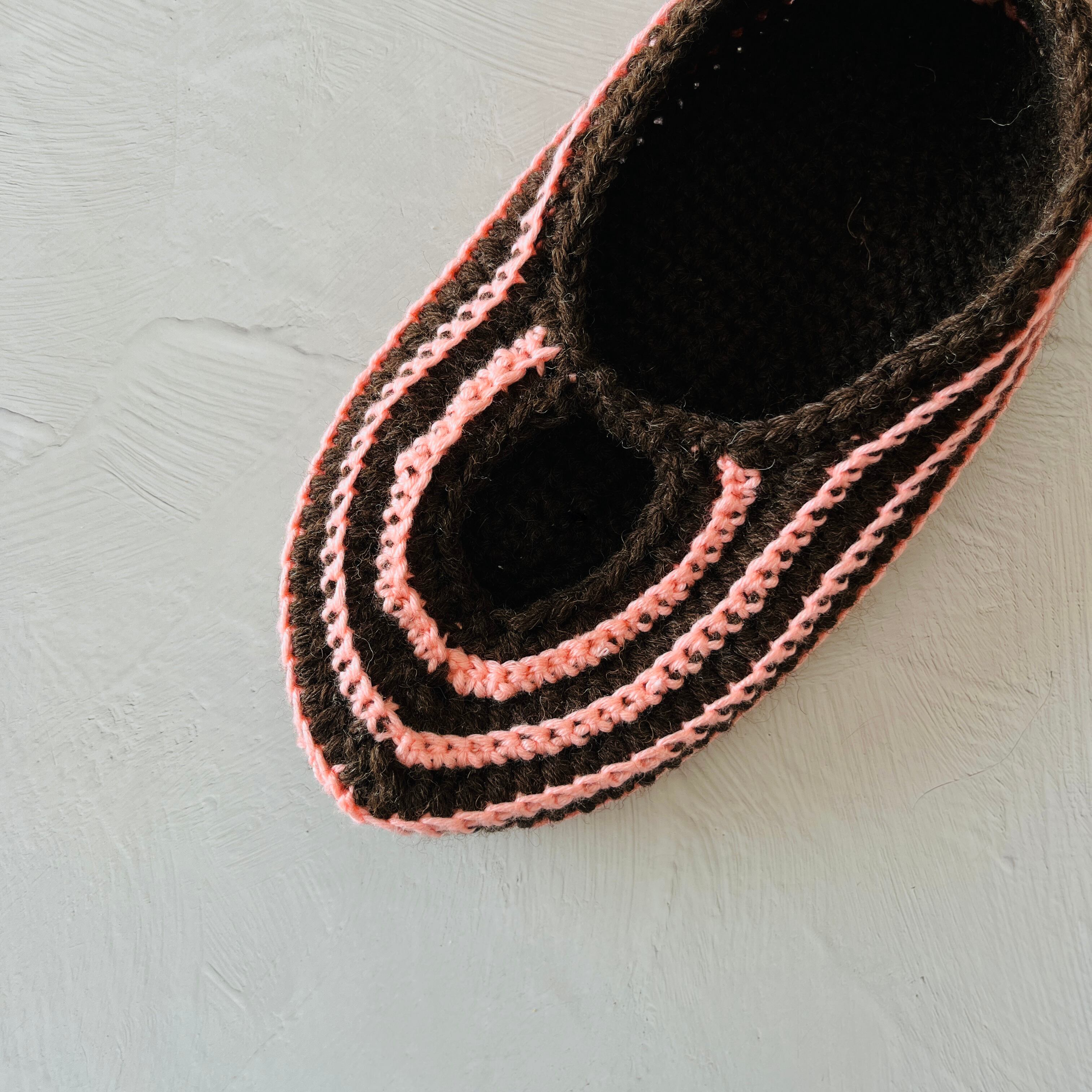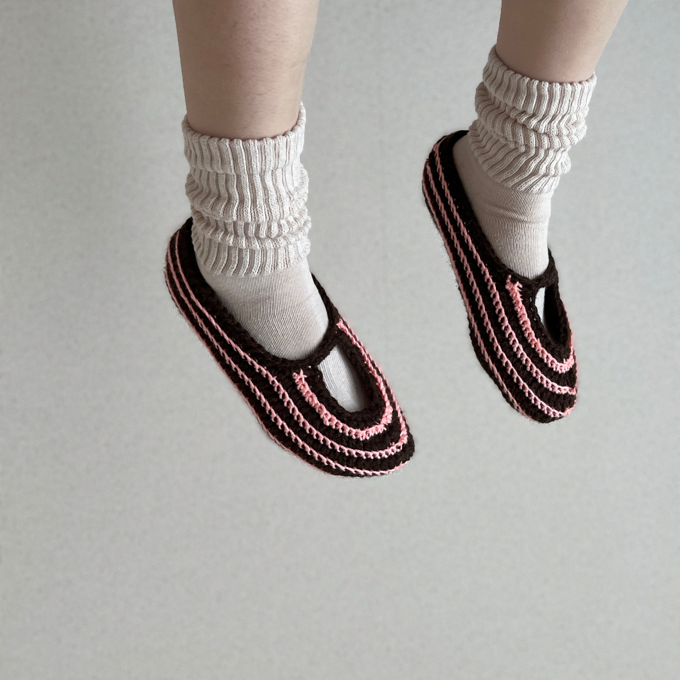 ストライプ模様のルームシューズは、あたたかさと可愛さを兼ね備えています。